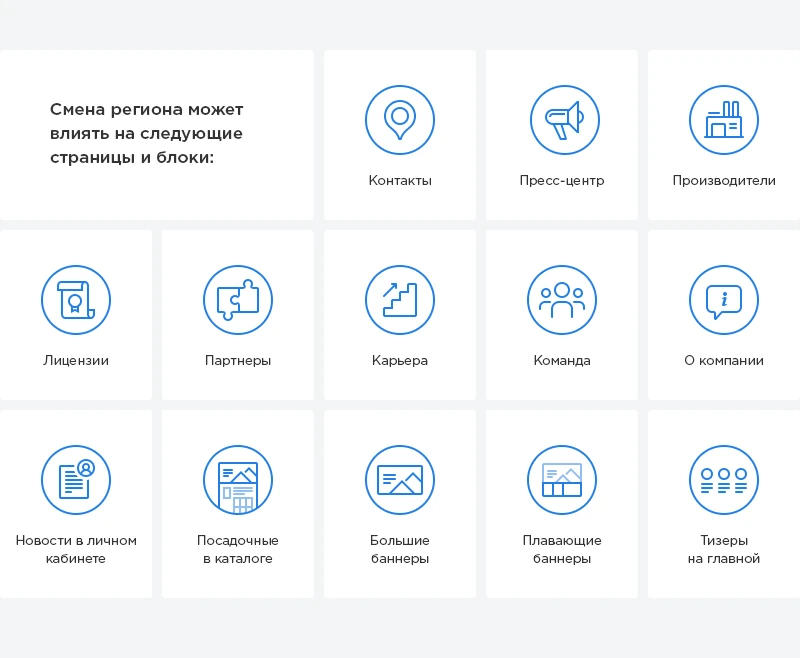 - С помощью специального тега REGION_TAG вы можете изменять условия сотрудничества, адреса представительств, описания товаров, услуг и медиаконтент в автоматическом режиме. Для каждого города будет отображена своя уникальная информация. Это поможет вам сделать контент еще более уникальным и избежать типичных проблем при продвижении сайта по нескольким регионам – например, склейки доменов Яндексом.